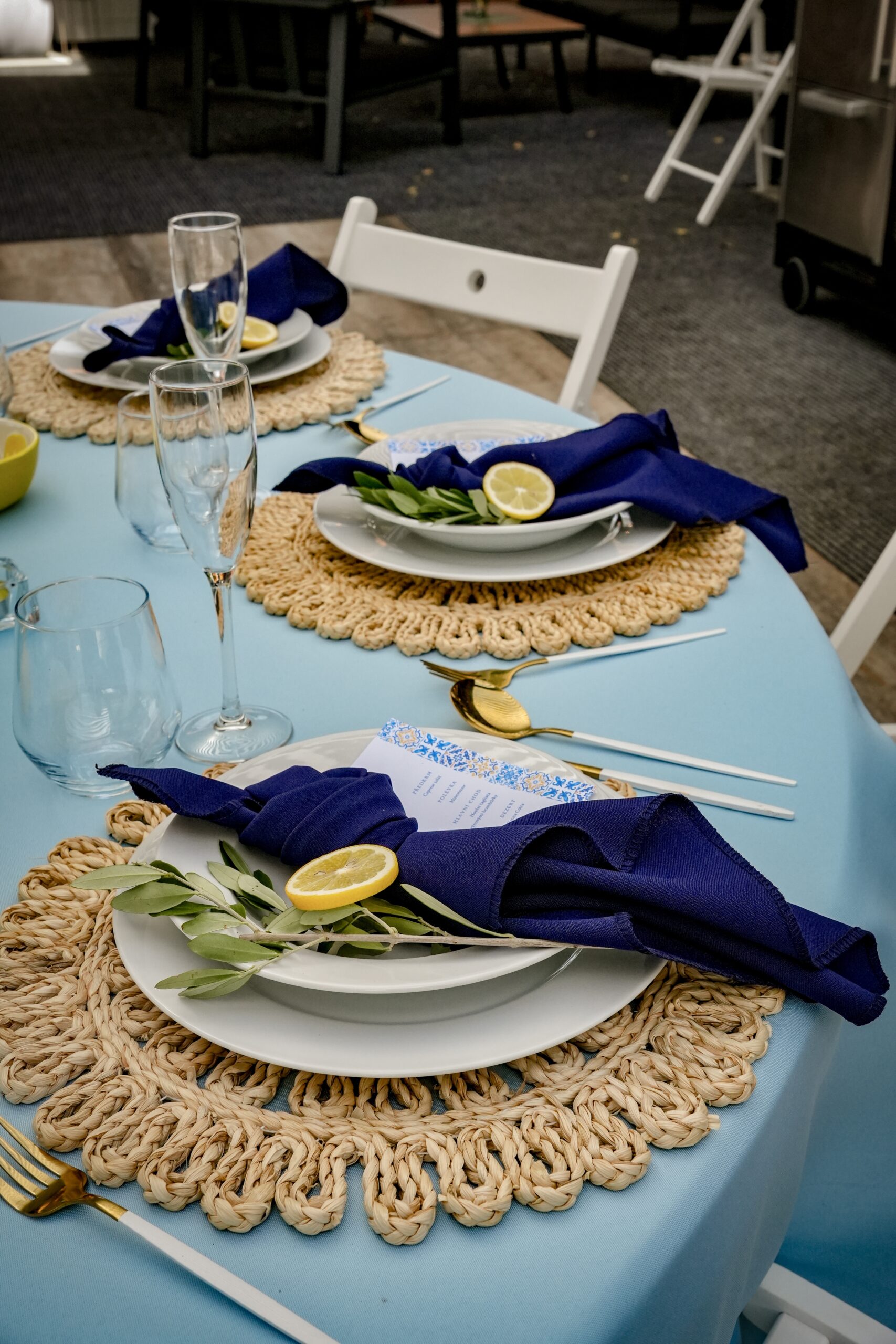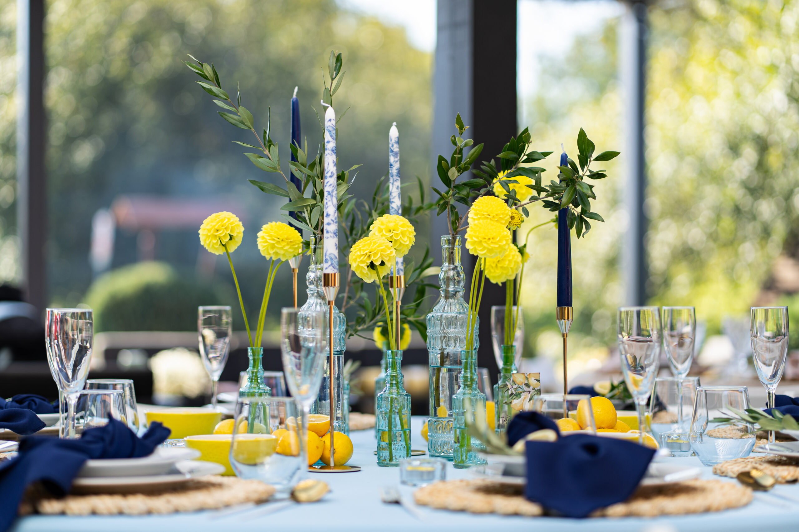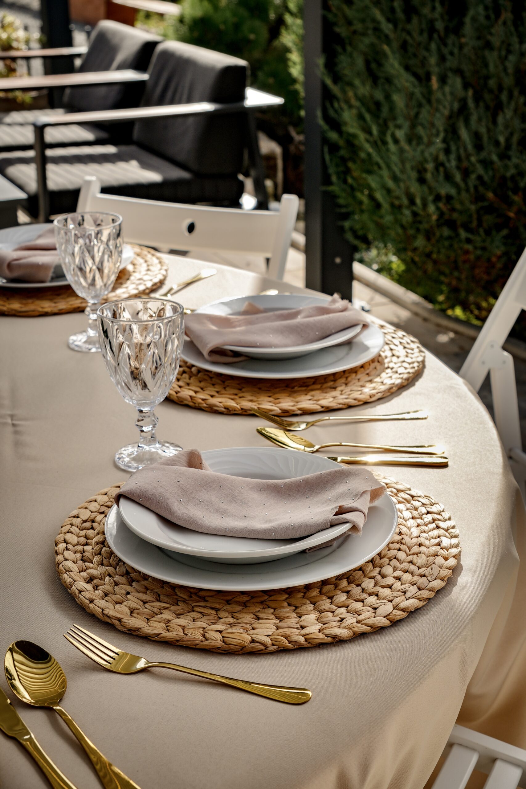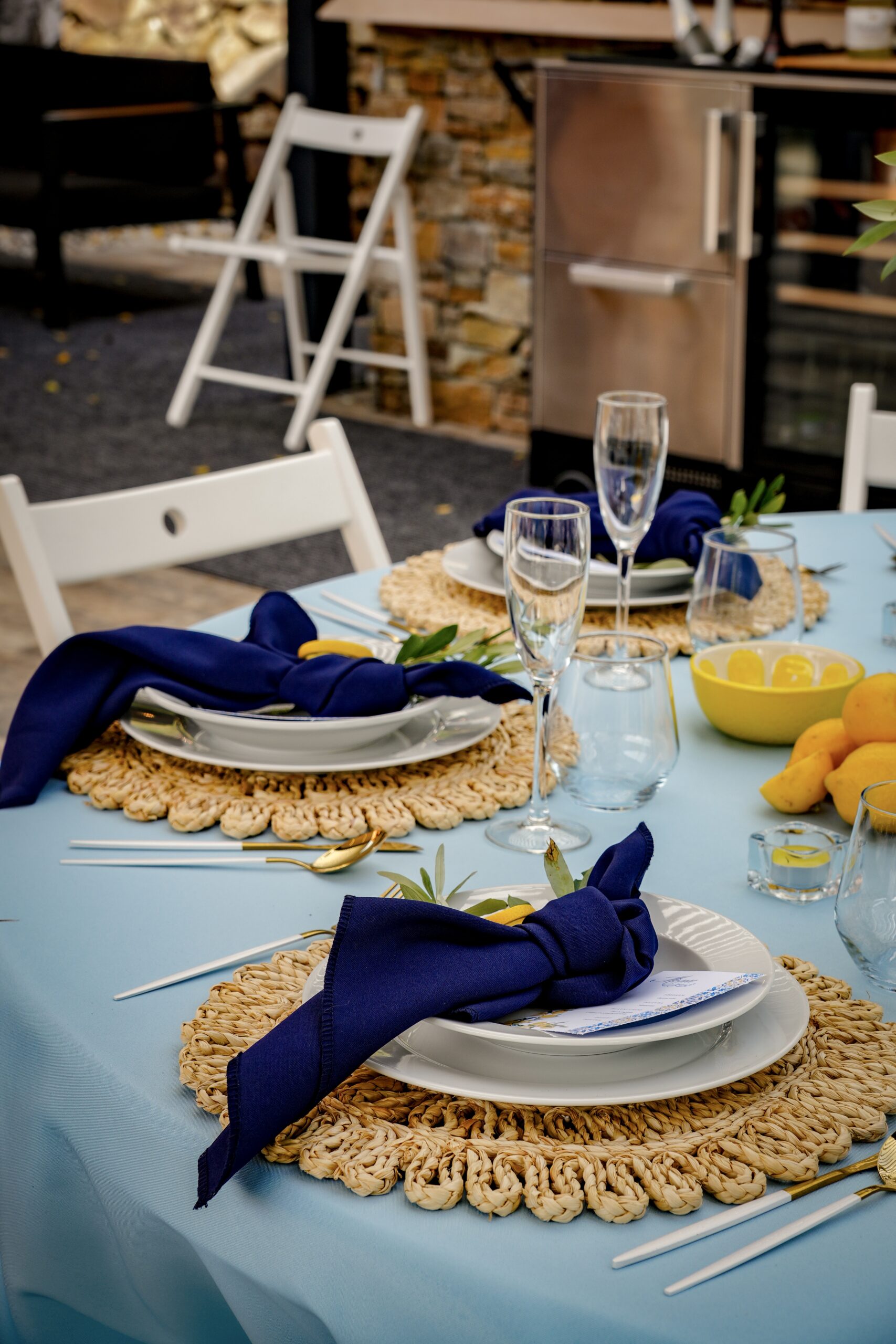 kompletní mobiliář – stoly, židle, jídelní servis, příbory i sklo,