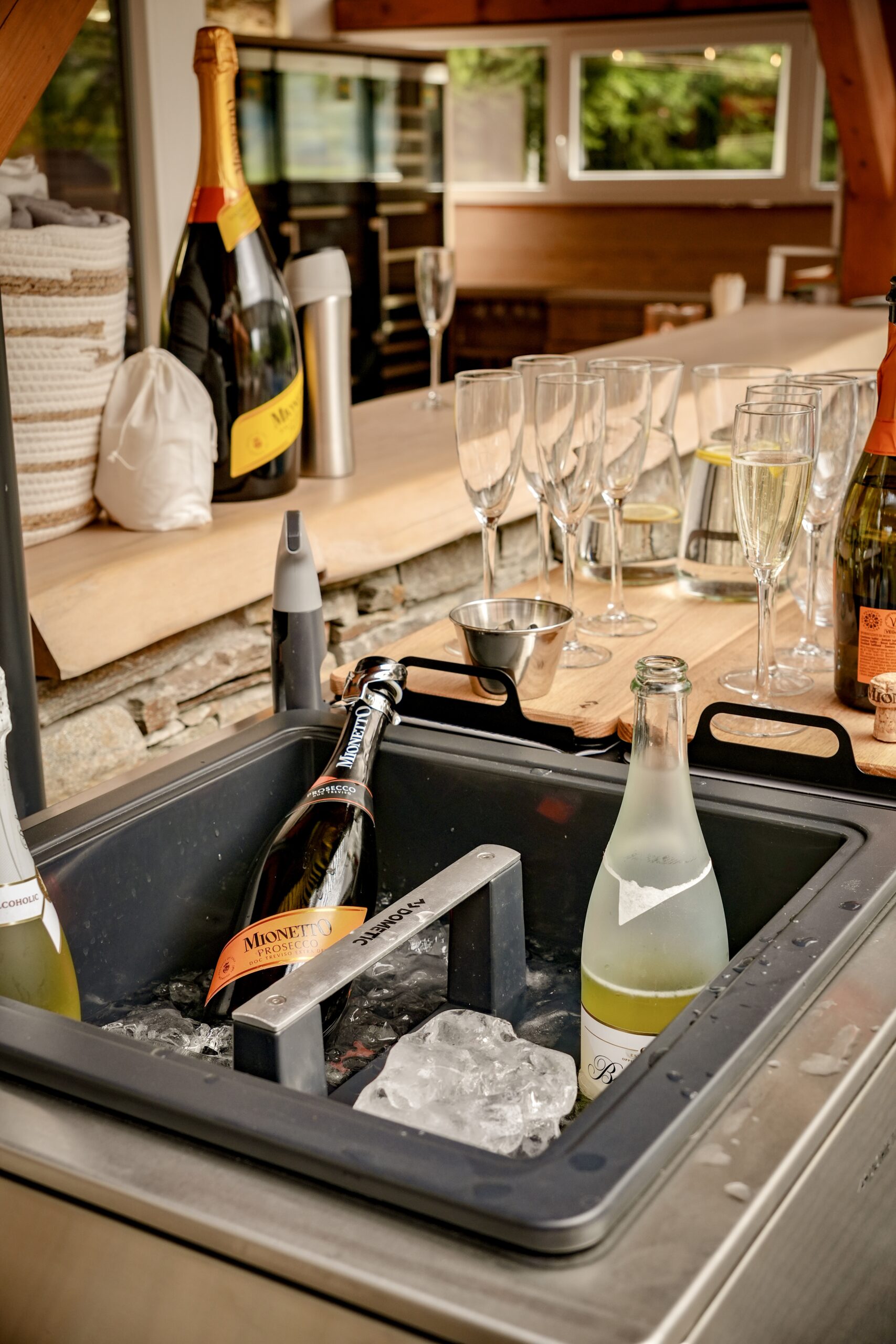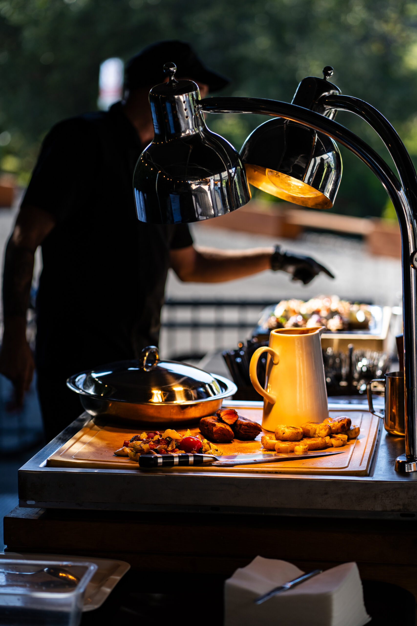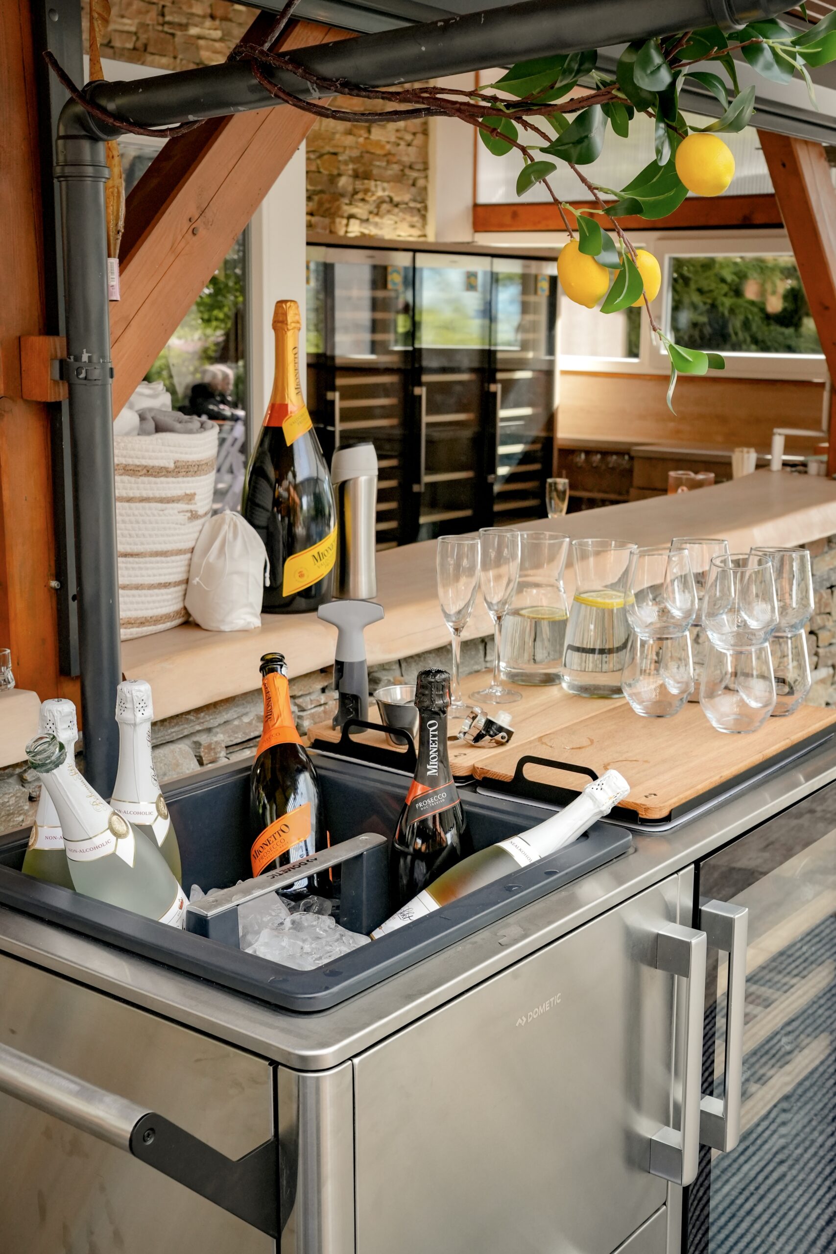 V letních měsících vás nadchne náš venkovní bar s bioklimatickou pergolou a posezením, vybavený výčepním zařízením, vinotékou a lednicemi. Je to ideální místo pro chvíle pohody a setkání až se 70 hosty.