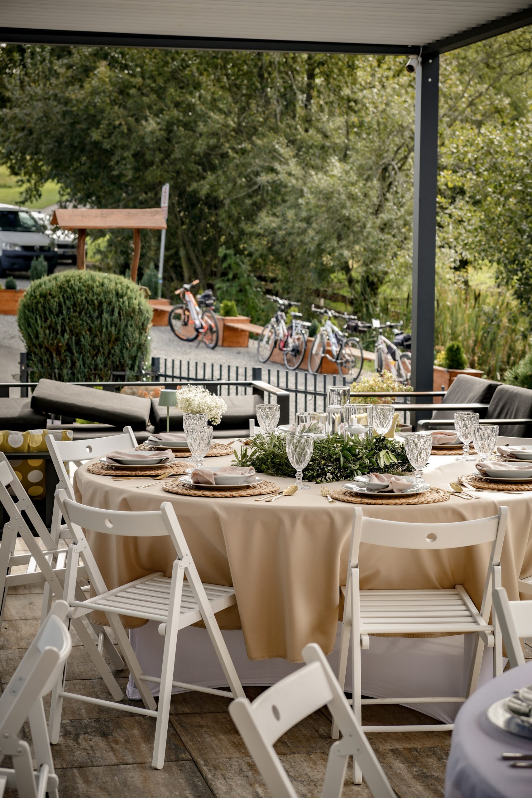 Prosvětlené prostory zdobené kulatinou ze staletých smrků, krásné prosklené stoly a pečlivě vybrané vybavení dodají vaší svatbě nezaměnitelný charakter. Moderně a pohodlně zařízené pokoje zajistí vašim hostům maximální komfort, aby si společně s vámi mohli užít celý víkend bez starostí.