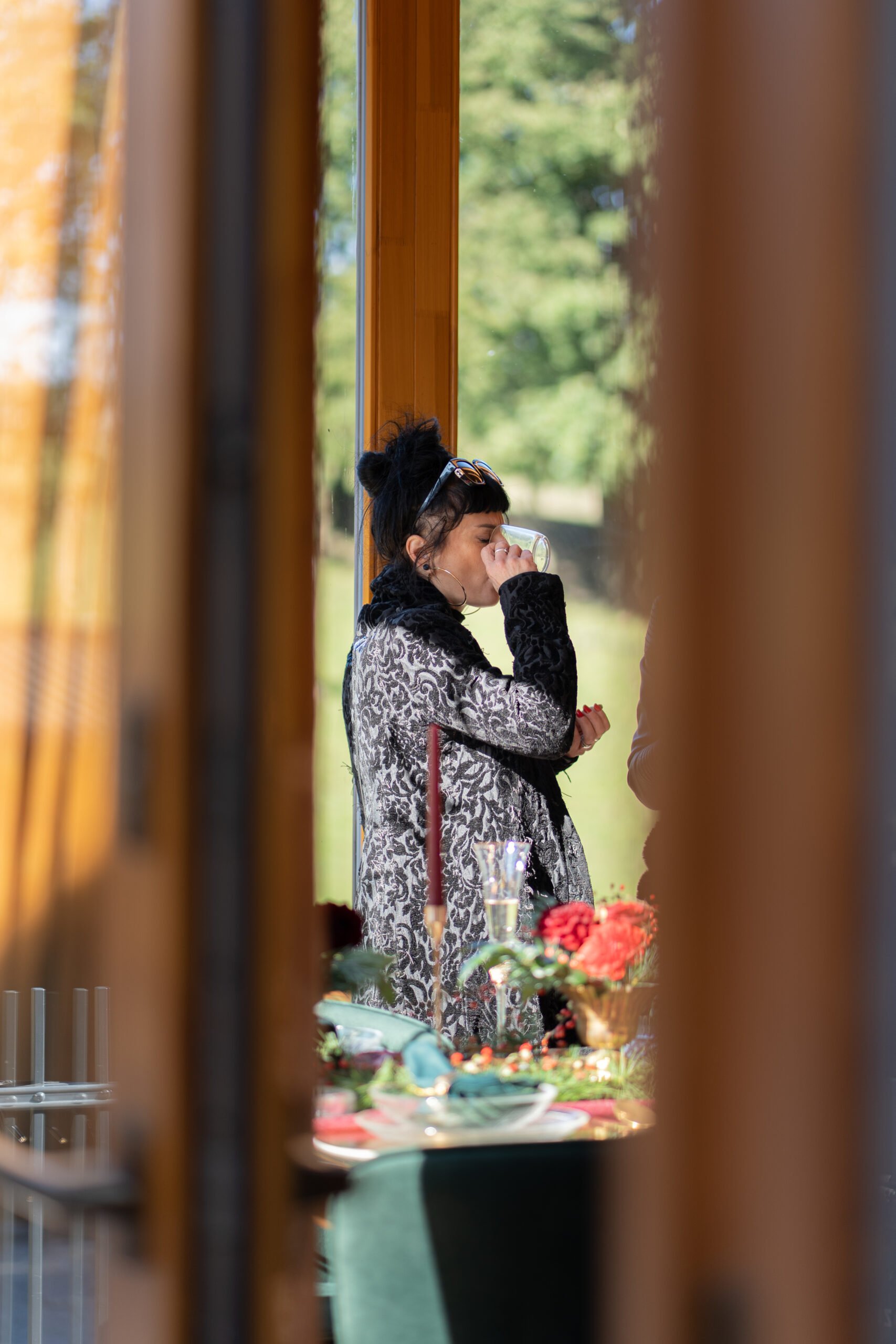 zimní vnitřní bar s kuchyní a prosklenou terasou, útulný prostor pro svatby v chladnějších měsících s kapacitou 40 hostů,